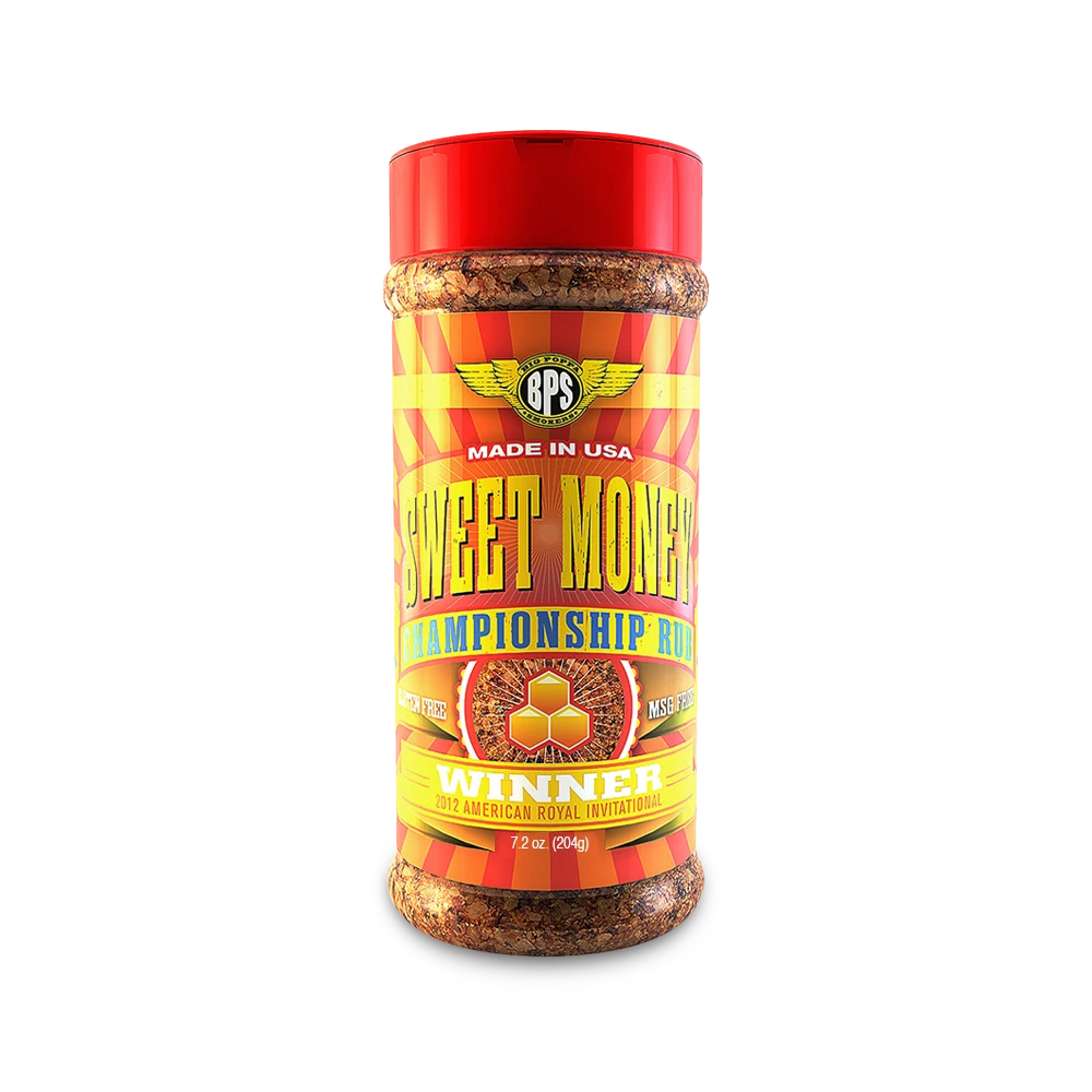 Big Poppa Smokers Sweet Money Rub. Van de achtertuin tot de World Series of BBQ, Big Poppa Smokers rubs zijn snel uitgegroeid tot het beste merk voor BBQ-concurrenten en BBQ-hobbyisten. Vervaardigd door Big Poppa zelf, zijn onze rubs gegroeid van een klein aantal volgers op het wedstrijdcircuit, tot gebruik in landelijke restaurantketens, tot het nieuwe hoofdgerecht thuis in de voorraadkast. Van barbecuegerechten in de achtertuin tot doorgewinterde pro, we zijn ervan overtuigd dat BPS-rubs uw BBQ-smaakprofiel zullen versterken.